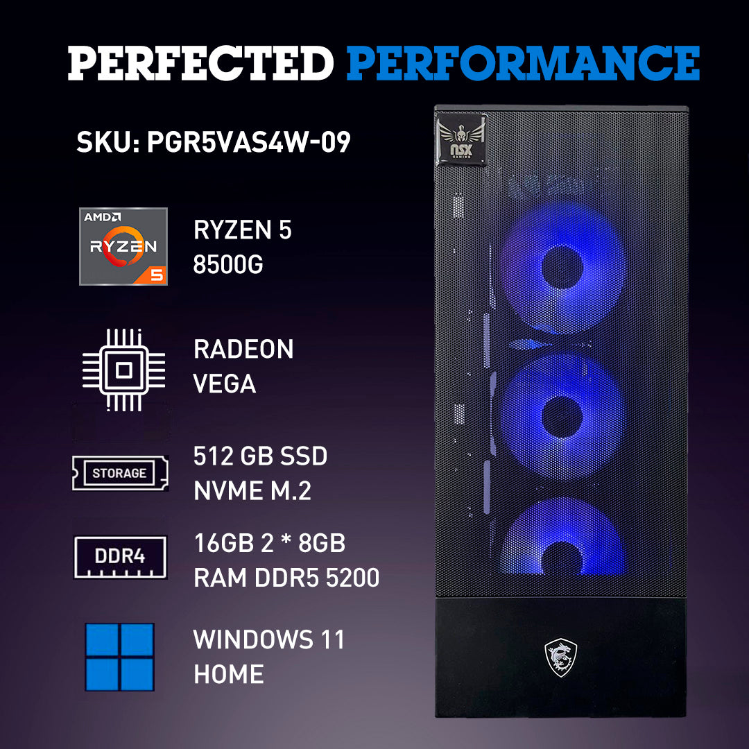 NSX Gaming PC (AMD RYZEN 5 8500G, 16GB 2 * 8Gb RAM Ddr5 5200, 512 GB SSD NVME M.2, WiFi Ready, Mouse and Keyboard, 1 year warranty)